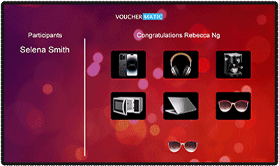 Create excitement with the Lucky Name Draw! Reward & Participants’ names flash on the screen, building suspense as the winner is revealed. Fully automated and secure.